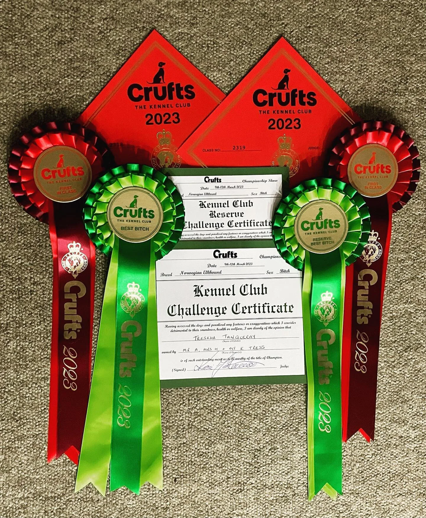 Treskha is a small family kennel based in Nottinghamshire under the guardianship of Helen and Katherine Tress. We have been involved with Elkhounds for over 20 years, but around dogs for more than 40 years; Katherine was a mere 9 months old when our first family dog joined us. Our first pedigree dog joined the family much later in the form of “Tegan”, a Dalmation.